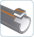 Estructura tricapa fabricada por co-extrusión dando origen a las nuevas tuberías Beta Fibra PP-RCT/F, más reforzado y más estable frente a la deformación por efectos de la temperatura, gracias a su capa intermedia de fibra de vidrio.