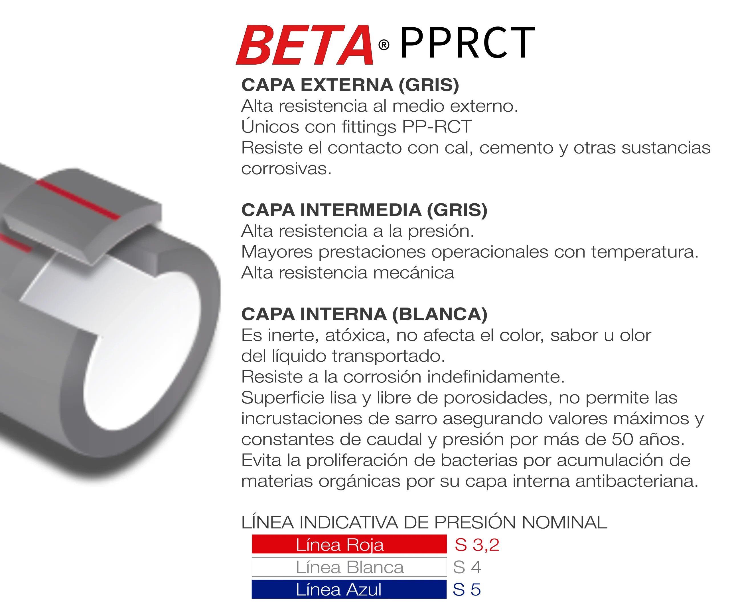 Tuberías PP-RCT Beta Nucleado, S-4 Línea Blanca